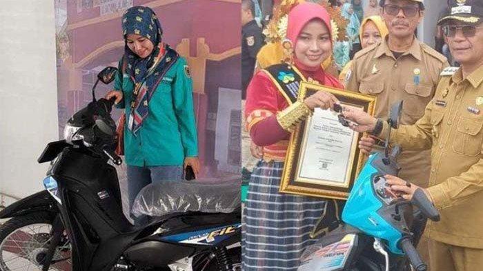Hadiah pertama, yaitu sepeda motor pribadi dari mantan Pj Bupati Polman, Andi Ilham Borahima, telah diserahkan langsung kepada Rusmiati.